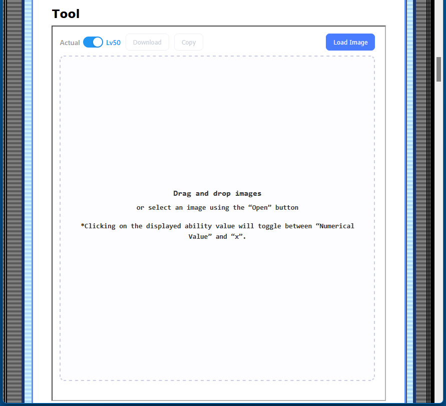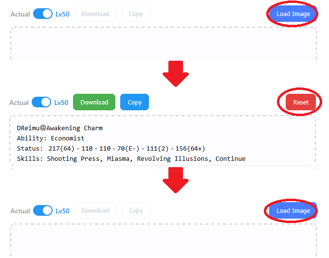 Save a puppet's status screen image using the game's screenshot function (P key), then drag & drop that image into the dashed area in the tool itself.