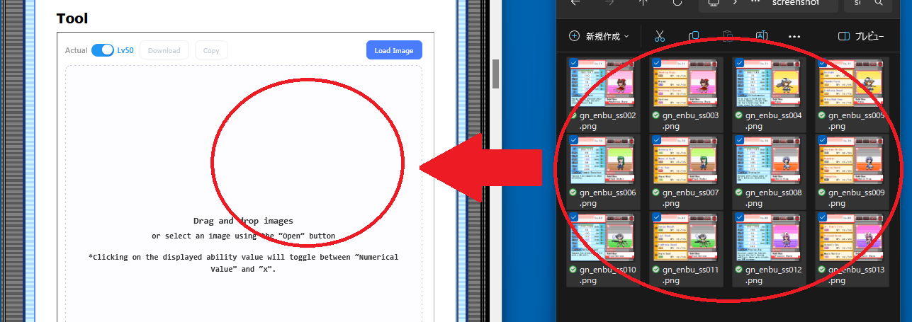 Images created by the "演舞のSS結合してPT紹介画像作るツール(Tool to combine TPDP screenshots into a party introduction image)" on this site may not have a consistent size (depending on presence/absence of borders, number of images combined, etc.), so they may not load correctly.