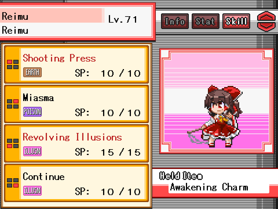 幻想人形演舞(Gensou Ningyou Enbu) and 幻想人形演舞-ユメノカケラ-(Gensou Ningyou Enbu Yume no Kakera) are copyrighted works by the doujin circle FocasLens / 幻想人形劇団(Gensou Ningyou Gekidan), and are a derivative work of the Touhou Project.Touhou Puppet Dance Performance Shard of Dream Exntended is an unofficial expansion patch created by Barudo(&his team).