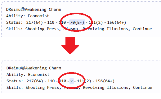 Clicking a displayed stat value lets you change that portion of the notation to “x”.